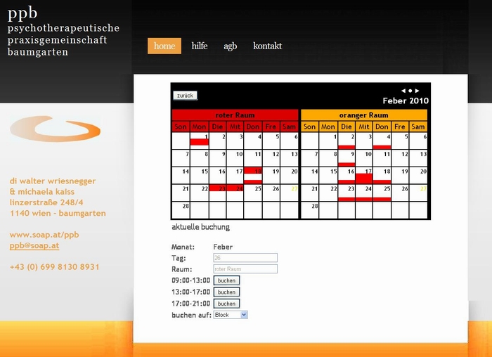 demonstration des buchungssystemes:schritt 3: buchungsmenürote balken kennzeichnen reservierte einheiten die bereits vergeben sind. |